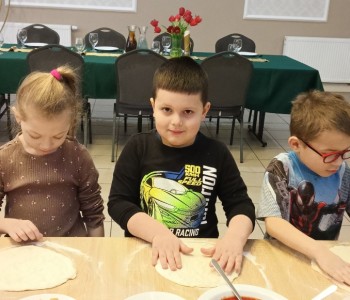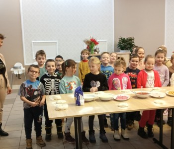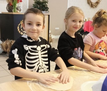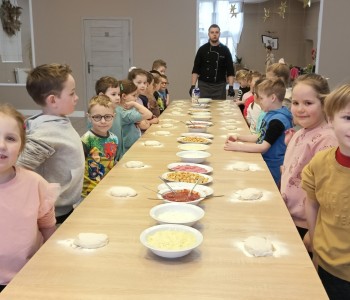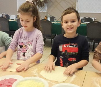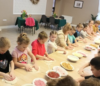 Każdy przedszkolak swoimi sprawnymi rączkami wykonał krążek z ciasta a następnie samodzielnie wybrał składniki do swojej pizzy. Dzieci miały okazję zobaczyć piec, w którym wypieka się pizzę. Po kilku minutach wszystkie pizze były już gotowe i każdy mógł się delektować swoim wypiekiem. Był to wspaniały dzień z mnóstwem niezapomnianych wrażeń. Serdecznie dziękujemy panu Dawidowi Krumrey za umożliwienie dzieciom udziału w warsztatach kulinarnych i miło spędzony czas.