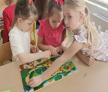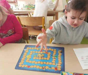 W grupie Muminków obchodziliśmy Dzień Gier Planszowych. Dzieci przyniosły tego dnia swoją ulubioną grę planszową, np.: „Grzybobranie”, „Chińczyk”, „Wyspa skarbów”, „Kto szybciej”, „Pchełki”, „Statki”.