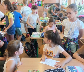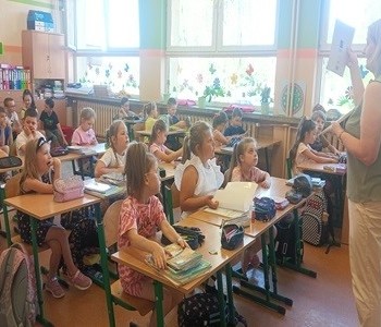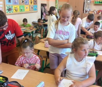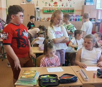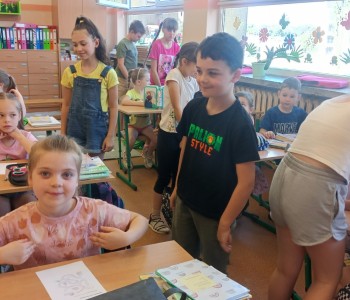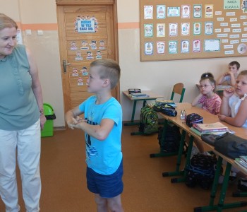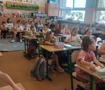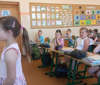 Następnie, pod opieką starszych kolegów i koleżanek, dzieci zwiedziły szkołę, gdzie widziały między innymi: salę komputerową, bibliotekę, stołówkę, halę sportową oraz odwiedziły klasę III. Przedszkolakom szkoła bardzo się spodobała i z wielką radością zostaną jej uczniami już po wakacjach.