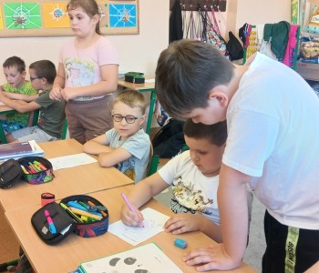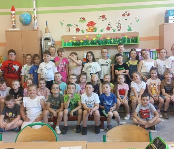 Grupa Muminków wybrała się na wycieczkę do szkoły podstawowej odwiedzając klasę II pod opieką pani Elżbiety Kurzawa. Przedszkolaki miały okazję zobaczyć jak uczą się uczniowie z klasy II, usiąść w szkolnych ławkach, obejrzeć wyposażenie każdego ucznia, zaprezentować swoje umiejętności czytelnicze podczas rozwiązywania zadań na tablicy interaktywnej oraz wykonać zadania rysunkowe.
