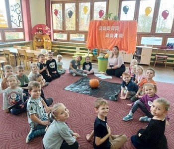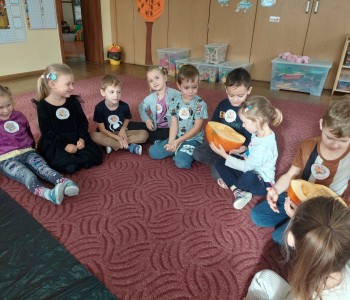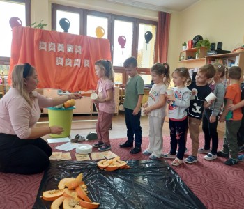 31 października w grupie Reksia obchodziły Dzień Dyni. Przedszkolaki miały okazję nie tylko do świetnej zabawy, ale także do poznania wielu ciekawostek na temat tego warzywa. Jedną z atrakcji była dyniowa zabawa sensoryczna, w której dzieci mogły zobaczyć jak wygląda wnętrze dyni, powąchać ja, a także wydłubać pestki i zabrać je do domu.