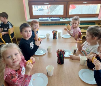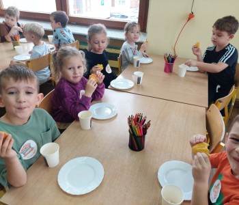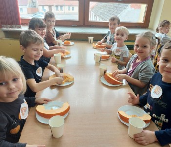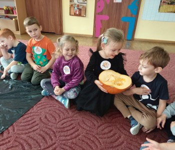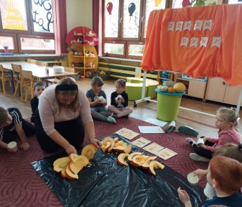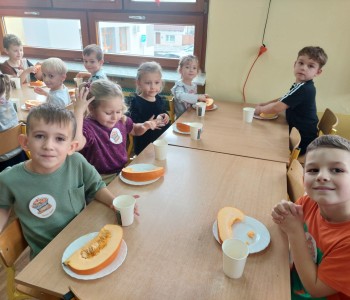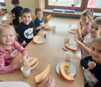 Dzięki uprzejmości kolegów i koleżanek z grupy Kubusia Puchatka, przedszkolaki mogły spróbować zdrowych ciasteczek z dodatkiem dyni. Dzień Dyni to nie tylko czas zabawy, ale i rozwijania umiejętności manualnych oraz poszerzania wiedzy o przyrodzie i zdrowym żywieniu. Dla przedszkolaków jest to też świetna okazja do integracji i wspólnego celebrowania pięknej, kolorowej jesieni.