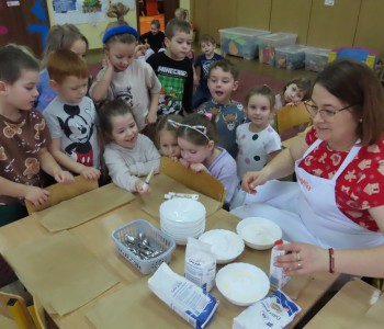 W grupie Reksia odbyły się wyjątkowe warsztaty piernikowe, które wzbudziły ogromne zainteresowanie wśród przedszkolaków. Do prowadzenia warsztatów zaproszona została pani Angelika Nowak, uczestniczka programu kulinarnego MasterChef, która poprowadziła dzieci przez fascynujący proces przygotowywania pierników.