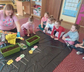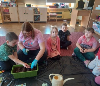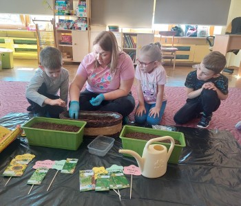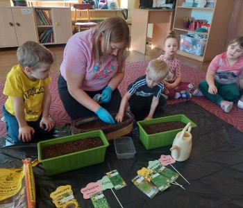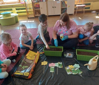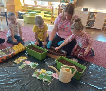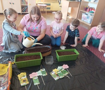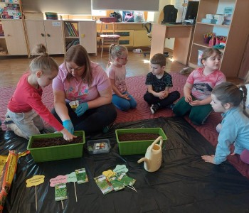 Na początku dzieci dowiedziały się, co potrzebne jest do posadzenia roślin i jak ważna jest woda i słońce do ich wzrostu. Następnym etapem było, przygotowanie doniczek, ziemi i nasion. Dzieci posiały szczypiorek, koperek i pietruszkę oraz słoneczniki. Przedszkolaki nie zapomniały też o kwiatach, sadząc cebulki frezji. Teraz wspólnie będziemy pielęgnować nasze roślinki i czekamy na efekty.