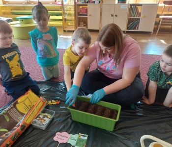 Kącik przyrody jest ważnym elementem dekoracyjnym i dydaktycznym w przedszkolu. Dzięki stałym zmianom w kąciku dzieci poznają pory roku, potrafią je wyróżnić i scharakteryzować. Dlatego też, grupa Reksia postanowiła założyć swoją zieloną hodowlę, witając nową porę roku - wiosnę.