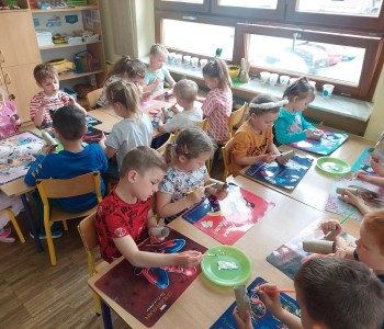 Następnie maluchy otrzymały potrzebne materiały: rolki, kolorowy papier, klej, nożyczki, pisaki i oczywiście... dużo wyobraźni! Najpierw każde dziecko malowało rolkę białą farbą. Potem przyszedł czas na wycinanie uszek, doklejanie oczek, rysowanie pyszczka i przyklejanie łapek. Zajączki wyszły przepiękne – każdy inny, każdy wyjątkowy! Dzieci były dumne ze swoich prac, a całe zajęcia pełne były radości, śmiechu i wspólnej zabawy. Takie aktywności nie tylko rozwijają zdolności manualne, ale też budują poczucie sprawczości i pozwalają wyrazić siebie.