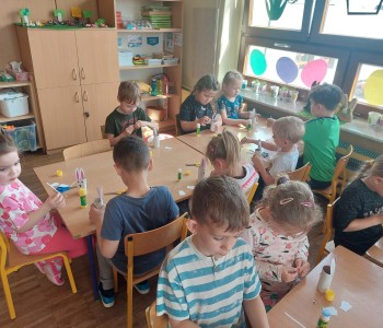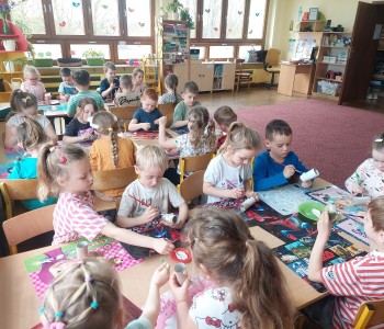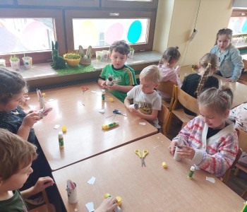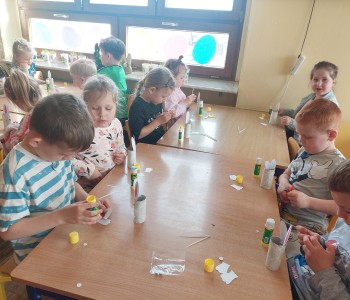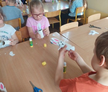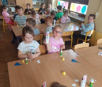 W grupie Reksia w przedszkolu wiosna zawitała na dobre – a wraz z nią pojawiły się pomysły na kreatywne zabawy plastyczne. Tym razem dzieci własnoręcznie wykonały urocze zajączki wielkanocne z... rolki po papierze toaletowym! Zajęcia rozpoczęły się od rozmowy o wiośnie i nadchodzących Świętach Wielkanocnych.