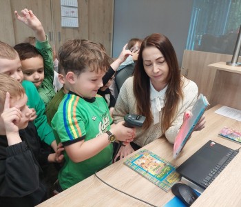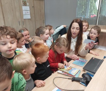 Przedszkolaki miały okazje poczuć się jak prawdziwy bibliotekarz podczas skanowania książek w systemie bibliotecznym. Pani Kamila opowiedziała i pokazała, dzieciom, na czym polega praca bibliotekarza. Dziękujemy. Anna Kaczmarek