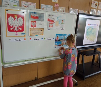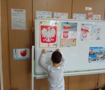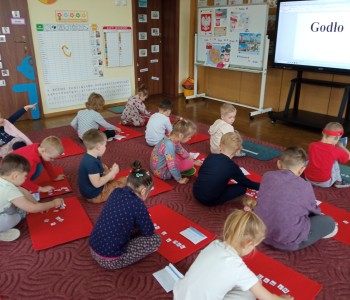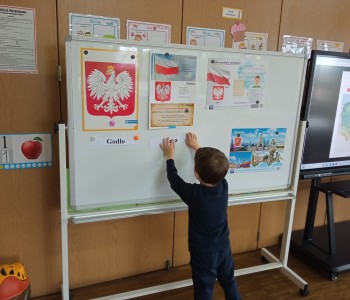 Z okazji zbliżającego się Dnia Flagi Rzeczypospolitej Polskiej dzieci z grupy Reksia utrwaliły wiedzę o polskich symbolach narodowych – dlaczego musimy je szanować, jak wygląda godło Polski, kiedy powstał hymn – „Mazurek Dąbrowskiego”, co oznaczają kolory na fladze: biel i czerwień.