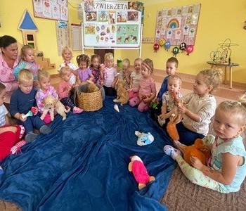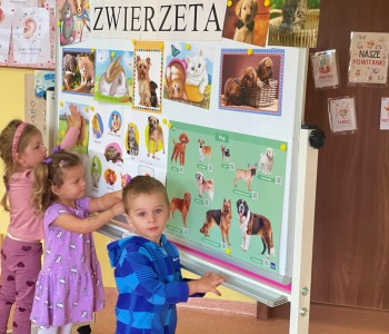 W październiku grupa „Smerfów” uczestniczyła w ciekawych zajęciach „Zwierzęta naszymi przyjaciółmi”. Dzieci rozmawiały o tym, jak należy dbać o swoich małych przyjaciół: pieski, kotki, rybki oraz inne zwierzątka. Przedszkolaki opowiadały o swoich pupilach, jak się nazywają, co lubią jeść oraz jak lubią się bawić.
