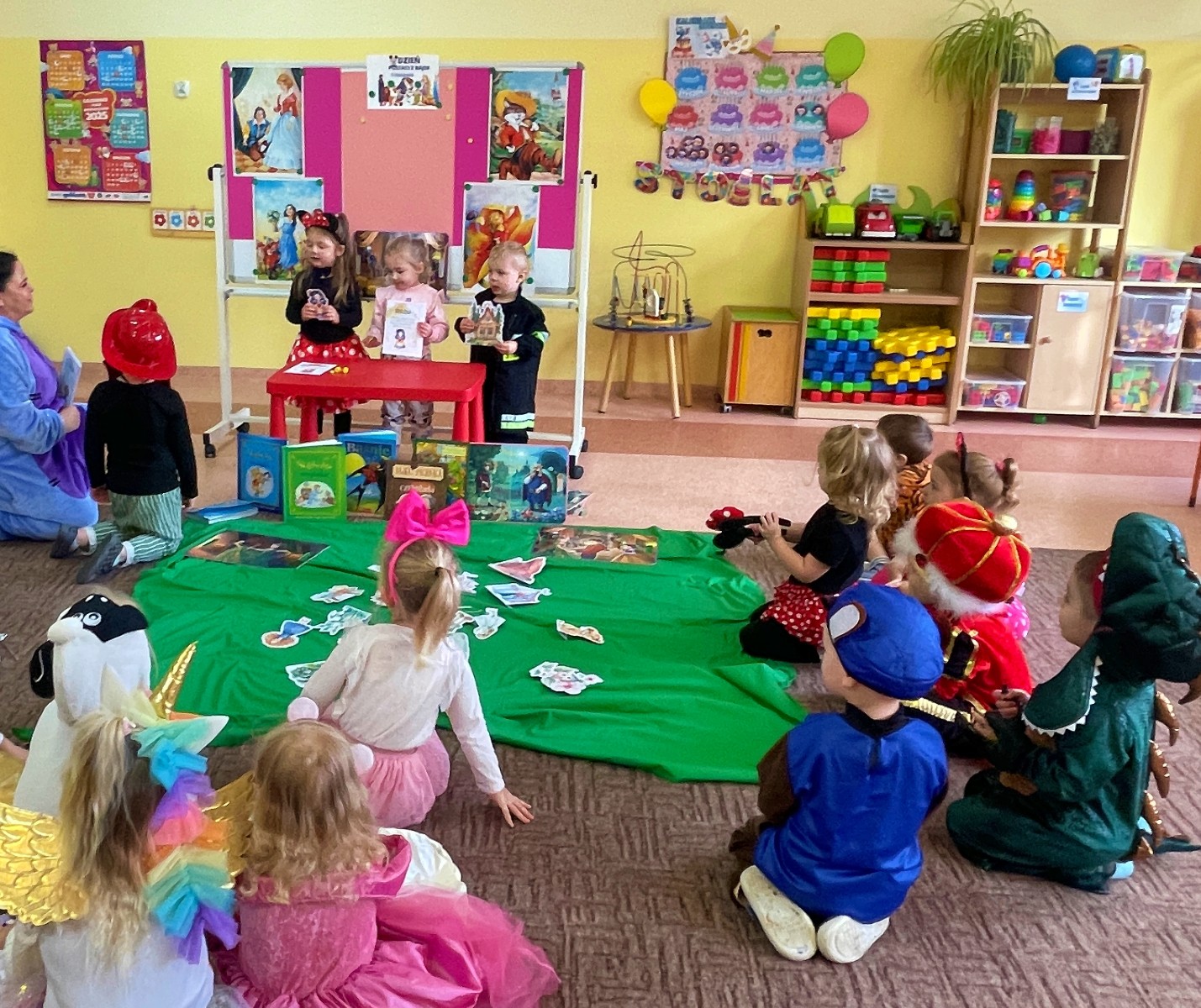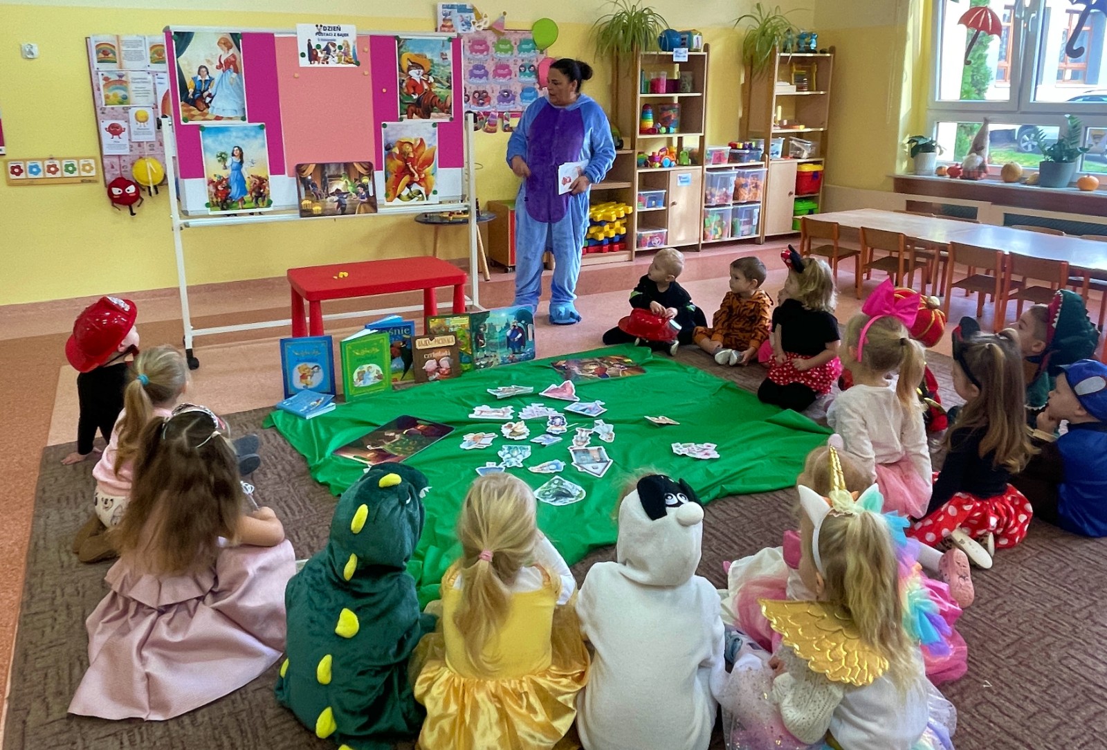 W świecie pełnym magii i wyobraźni, w grupie Smerfów, każdy dzień może stać się bajką, ale ten był bardzo wyjątkowy! Z okazji Dnia Postaci z Bajek salę wypełniły czary, uśmiechy oraz kolorowe stroje. W przedszkolu panowała magiczna atmosfera. Najmłodsi nie mogli się nadziwić, jak wiele bajek ożyło w jednym miejscu.