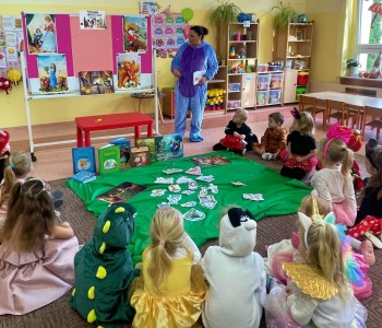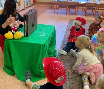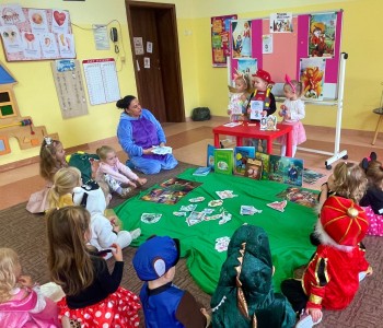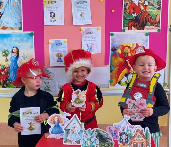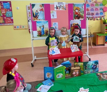 Zawitały królewny, wróżki, smoki i super bohaterowie. Były tańce, zabawy, zagadki, baśnie i bajki, to wszystko z okazji święta bajkowych bohaterów, dużych i małych! W tajemniczy świat opowieści wprowadziła nas również pani bibliotekarka, która odwiedziła przedszkole z teatrzykiem kamishibai. Gdy pani Kamila otworzyła małą drewnianą skrzyneczkę, dzieci zamarły z zachwytu. Z wnętrza teatrzyku wysunęły się piękne ilustracje, a słowa opowieści popłynęły jak czarodziejska melodia. Bajka opowiadała o przyjaźni, odwadze i o tym, że dobro zawsze zwycięża. Smerfy słuchały jak zaczarowane, a w ich oczach błyszczała ciekawość i zachwyt. Na podsumowanie przedszkolaki opowiadały o swoich ulubionych bohaterach i wykonały wybrane postacie podczas zajęć plastycznych. To był naprawdę magiczny dzień, pełen czarów, śmiechu oraz wspólnych przygód. Bo przecież w przedszkolu, gdzie mieszkają Smerfy, bajki nigdy się nie kończą, wystarczy tylko otworzyć książkę i pozwolić, by zaczarowała nas jej historia…