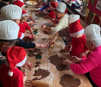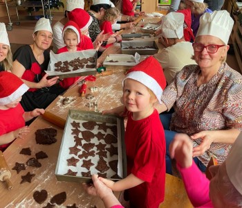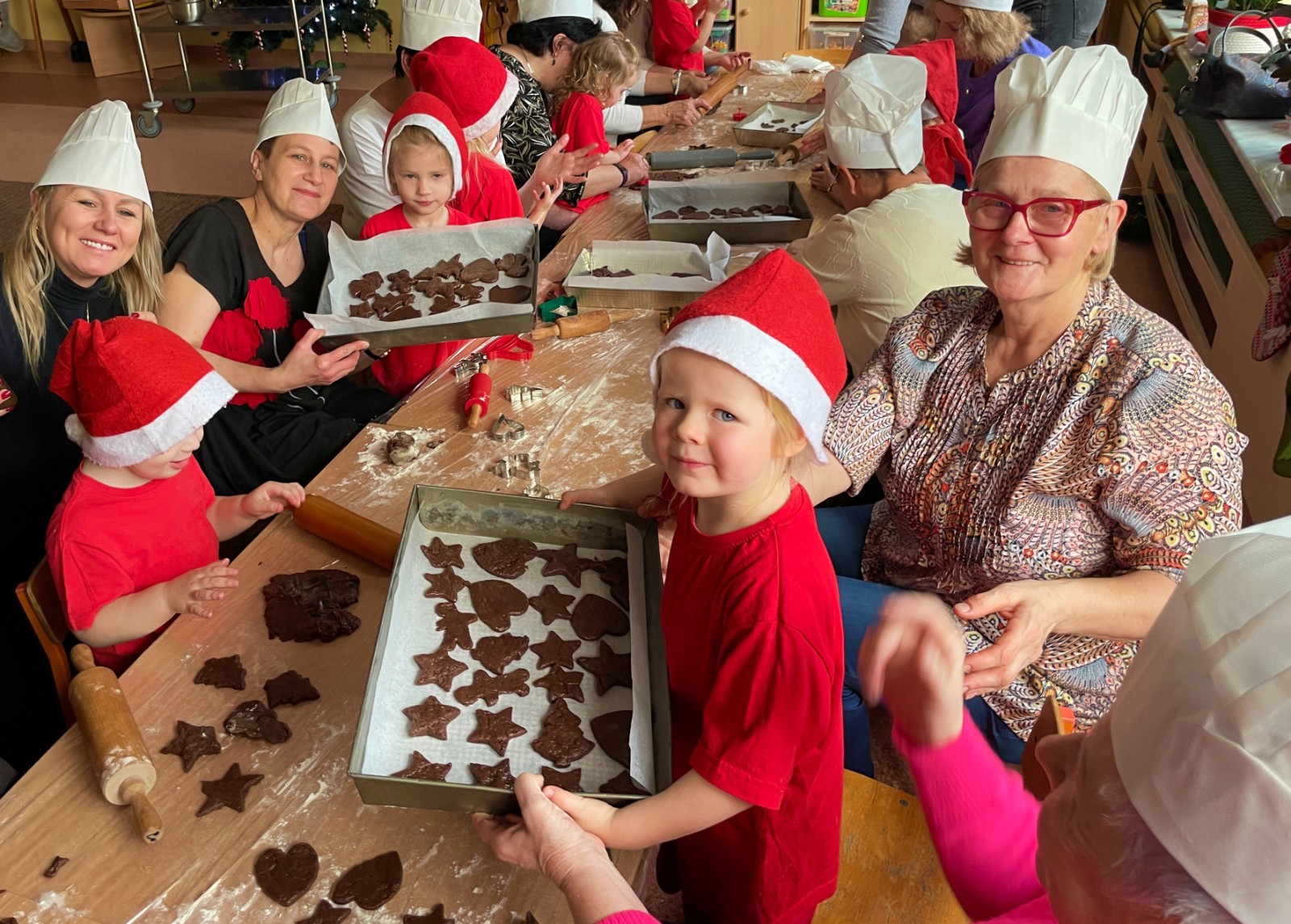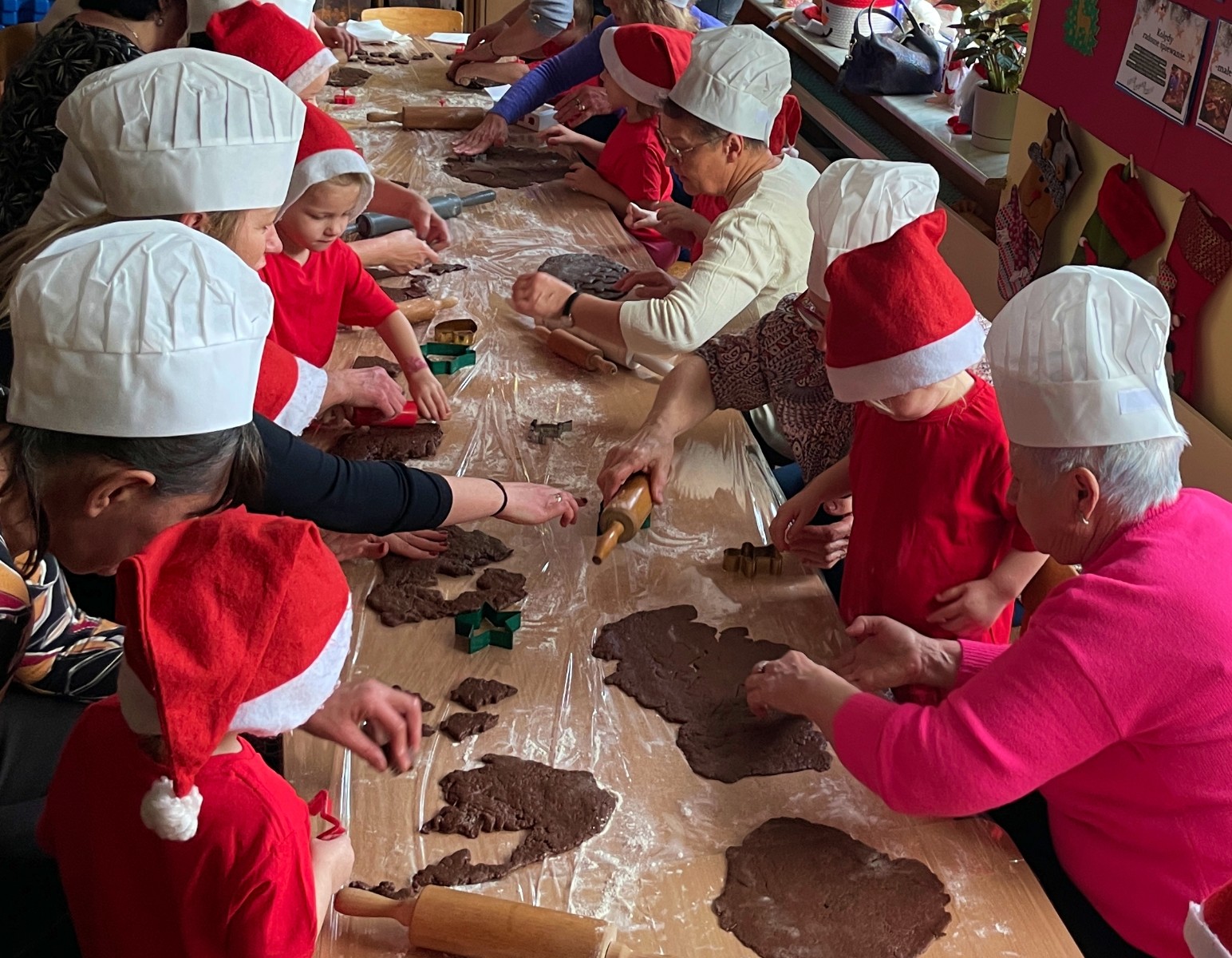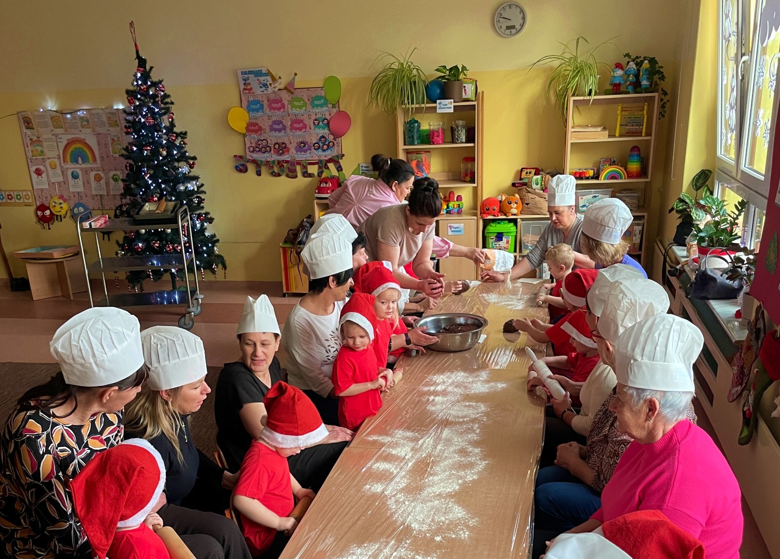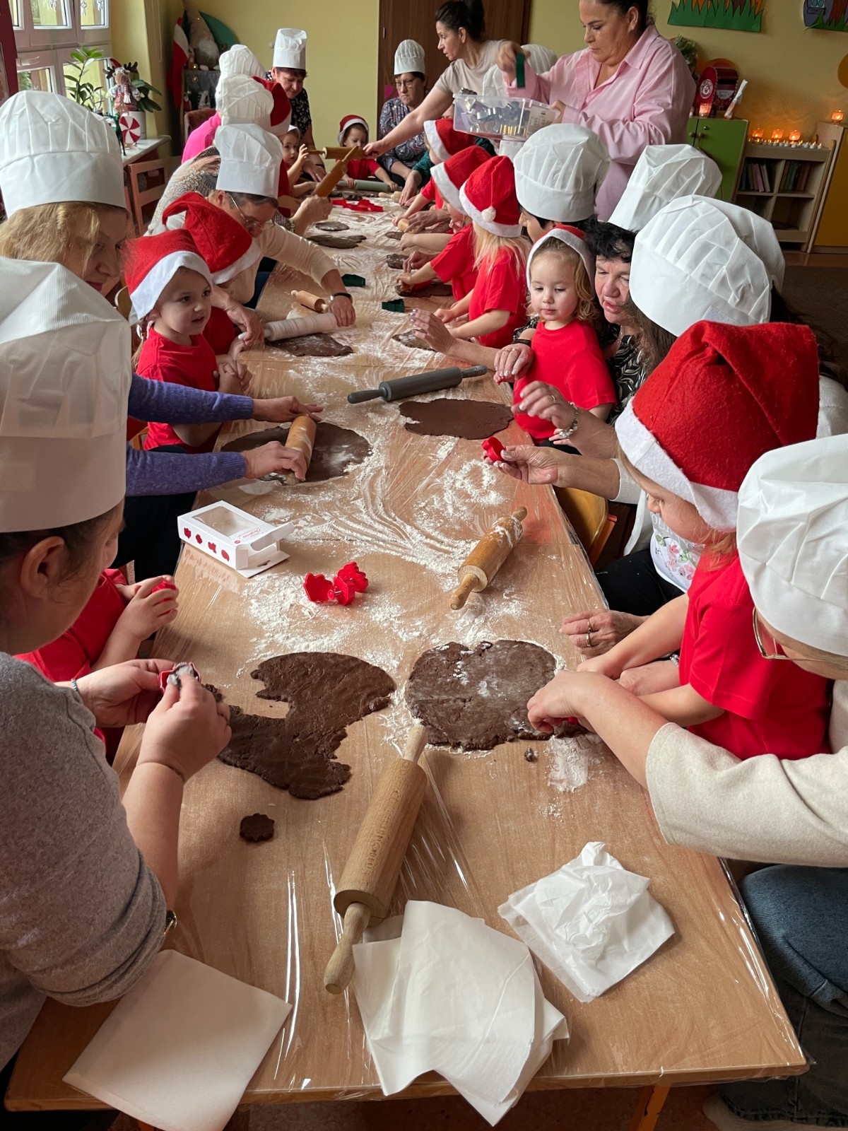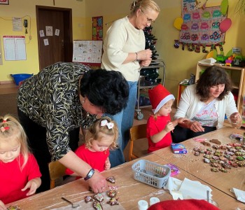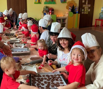 Kiedy najbliżsi przekroczyli próg sali, poczuć można było, jak unosi się w powietrzu ciepło, dobroć i świąteczna magia. Sala przedszkolna zamieniła się w pracownię Elfów. Ciasto mięciutko uginało się pod wałkami, foremki odbijały świąteczne kształty, a lukier połyskiwał jak śnieg w świetle lampek choinkowych. Wspólne pieczenie stało się nie tylko zabawą, lecz także piękną lekcją miłości, tradycji i bycia razem. Gdy pierwsze pierniczki wyszły z piekarnika, ich zapach otulił wszystkich jak świąteczna bajka. A w sercach dzieci oraz najbliższych zapalił się ciepły, grudniowy płomyk – ten, który mówi, że magia świąt jest wszędzie tam, gdzie spotykają się bliskość i uśmiech. Spotkanie było doskonałą okazją do budowania więzi międzypokoleniowych. Panowała ciepła, rodzinna atmosfera, wypełniona śmiechem, rozmowami i zapachem korzennych przypraw. Ten magiczny dzień można uznać za jeden z najpiękniejszych w grudniu.