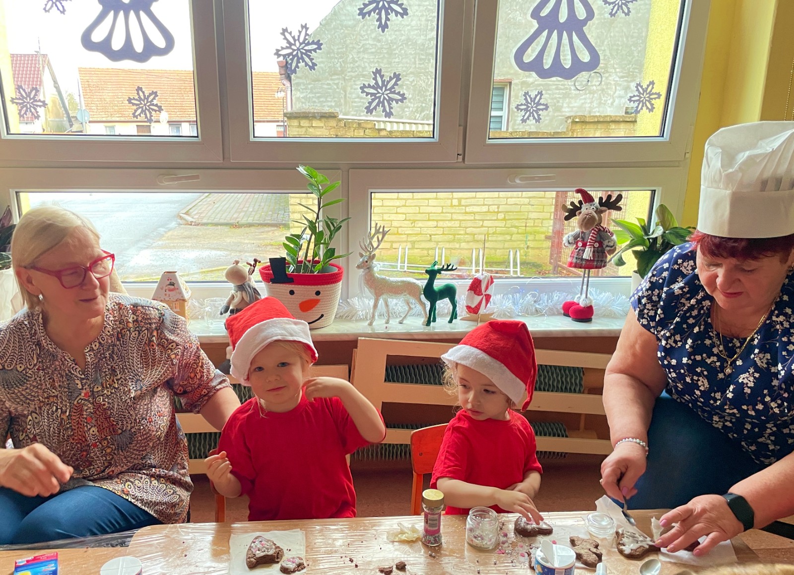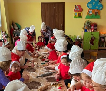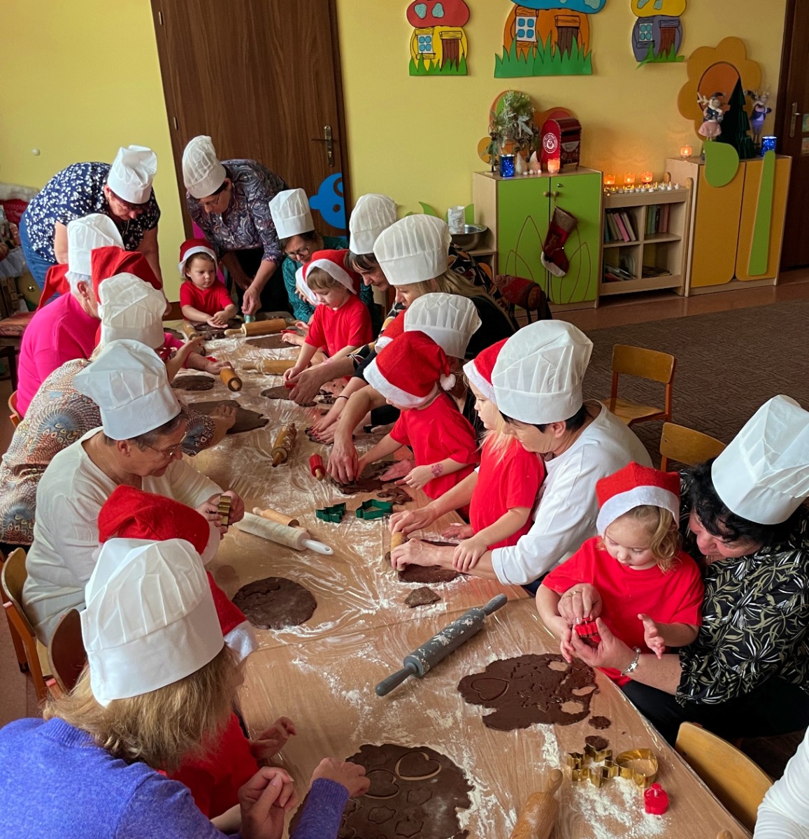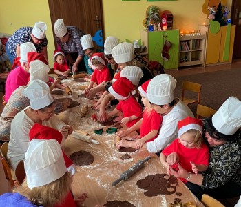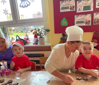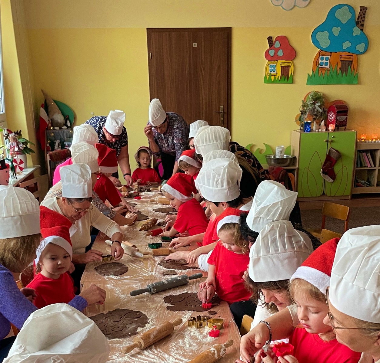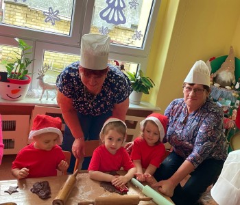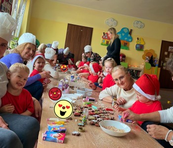 W pewien grudniowy poranek w grupie Smerfów wydarzyło się coś niezwykłego. Zaraz po śniadaniu przedszkolaki usłyszały delikatny dźwięk dzwoneczków – to Babcie, niczym pomocnice Świętego Mikołaja, przybyły, by wspólnie z wnukami wyczarować piernikowe cuda.