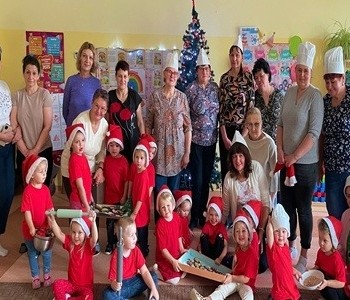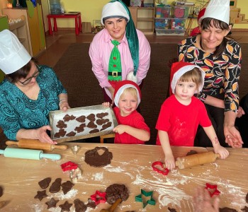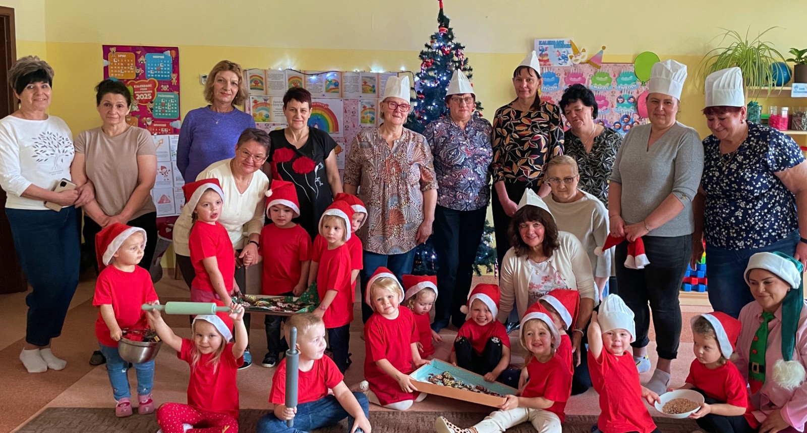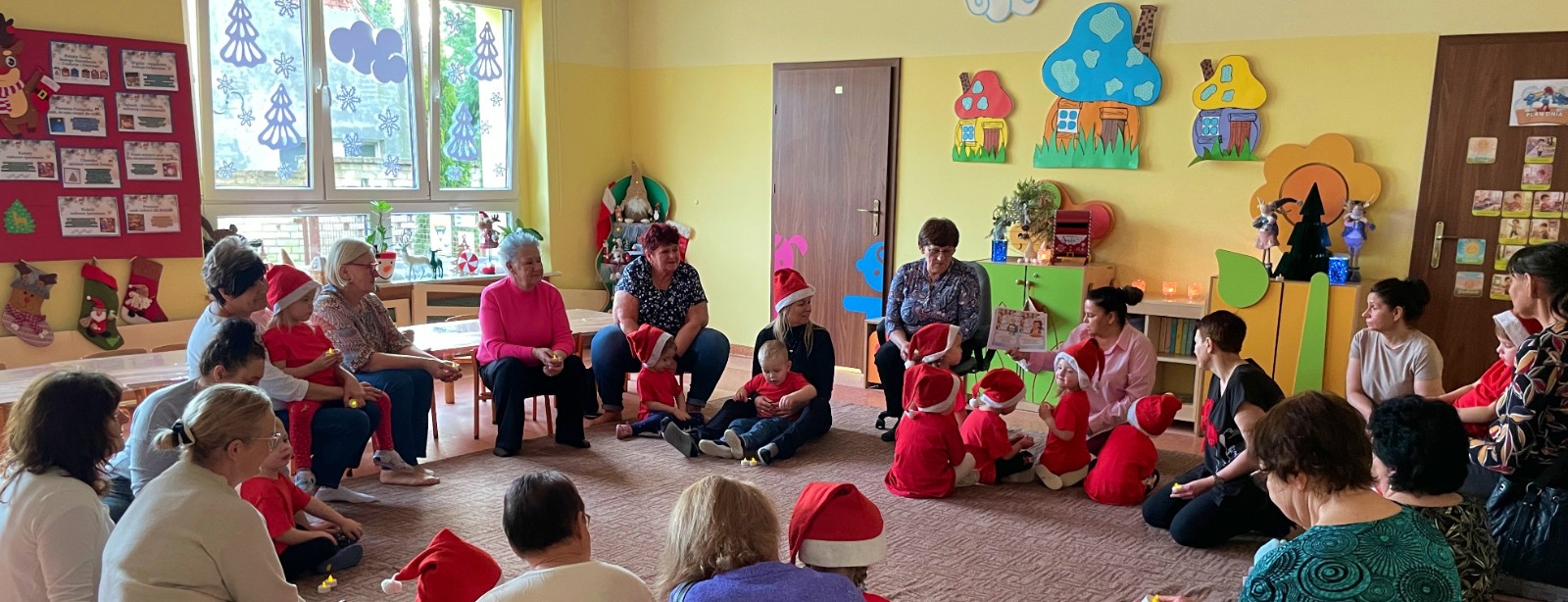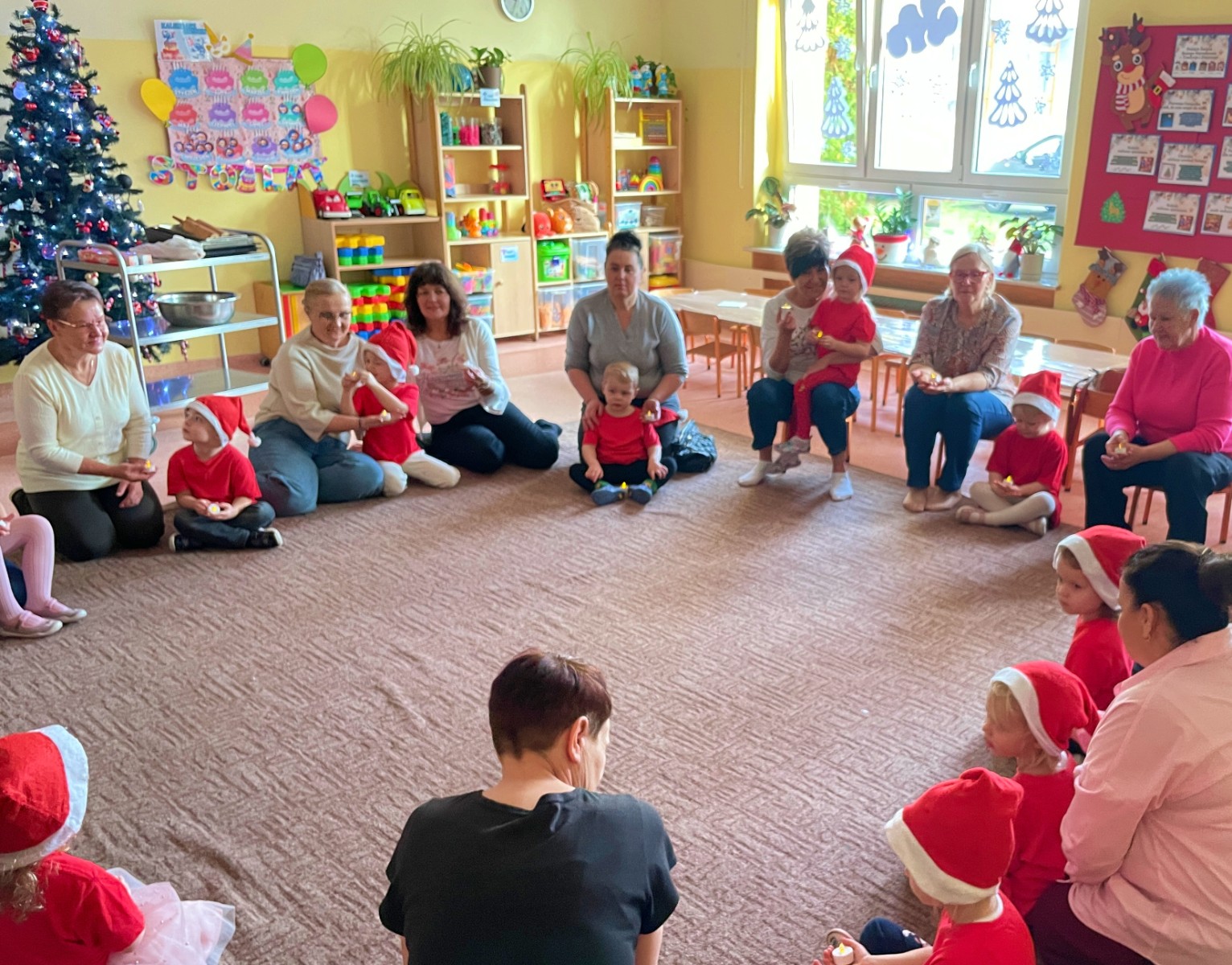 W pewien grudniowy poranek w grupie Smerfów wydarzyło się coś niezwykłego. Zaraz po śniadaniu przedszkolaki usłyszały delikatny dźwięk dzwoneczków – to Babcie, niczym pomocnice Świętego Mikołaja, przybyły, by wspólnie z wnukami wyczarować piernikowe cuda.