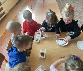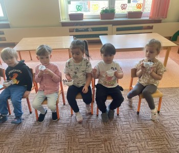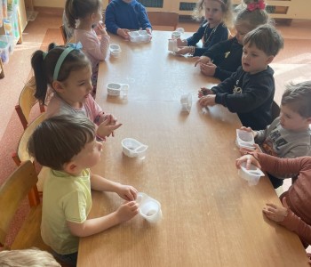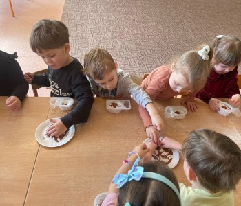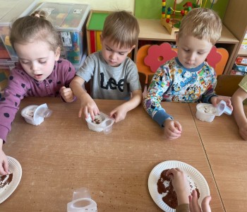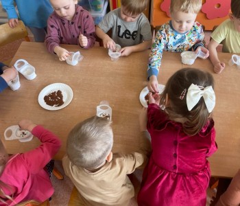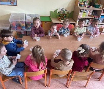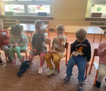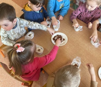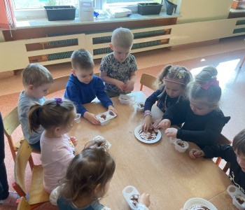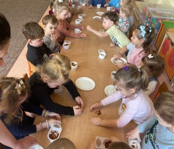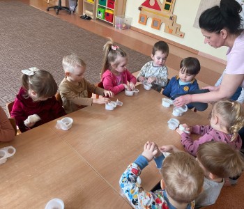 We wtorek 26 marca dzieci z grupy Smerfy wykonały baranki z rzeżuchą. W przyniesionych pojemnikach po jogurtach dzieci zasiały na wacie rzeżuchę. Następnie wszyscy dokleili oczy i rogi swoim barankom. Wykonane baranki dzieci zabiorą do domu na święta, aby mieć świeżo wyrośniętą rzeżuchę w domu.