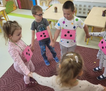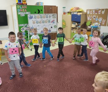 W piątek 13 września dzieci z grupy Wróbelka Elemelka obchodziły Dzień Kropki. Przedszkolaki dowiedziały się czym jest tolerancja i kreatywność. Wiedzą, że każdy ma jakiś talent, który może być jeszcze ukryty. Liczyły kropki, kolorowały kropki i z kropkami tańczyły. Dzieci były pięknie ubrane w kreatywnie wymyślone kropkowane stroje. Żadna kreacja z kropek nie powtarzała się , każda była jedyna w swoim rodzaju. To był kolorowy i wesoły dzień.