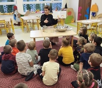 Powinny one wzbogacać wiedzę dzieci z zakresu zdrowia i higieny, a także umożliwić nabycie określonych umiejętności, przyswojenie prawidłowych przyzwyczajeń i nawyków higienicznych oraz zdrowotnych. Budowanie świadomości prozdrowotnej to nie tylko przekazywanie wiedzy, ale również odpowiedzialność za własne zdrowie i dobre samopoczucie. Wymaga to od osób przekazujących wiedzę takiego doboru treści, umiejętności, sytuacji dydaktycznych i wychowawczych, które wpłyną na kształtowanie przyzwyczajeń higienicznych w przyszłości. Nasza pielęgniarka pani Sylwia jak zwykle przeprowadziła bardzo ciekawe zajęcia z dziećmi w czasie których nie zabrakło eksperymentów pokazujących jak bakterie działają na zęby.