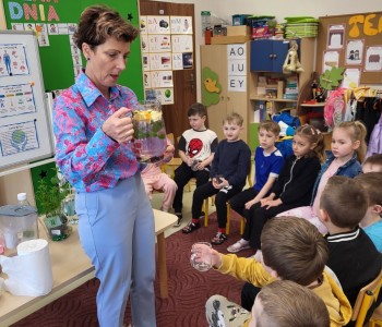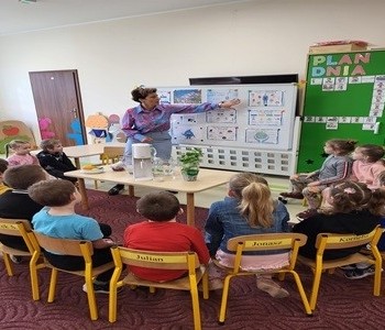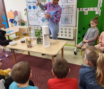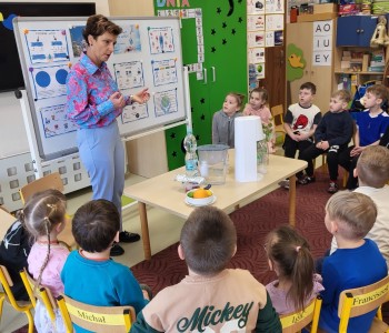 W piątek 28 marca dzieci z grupy Wróbelka Elemelka gościły pielęgniarkę. Pani Sylwia w czasie spotkania przypomniała przedszkolakom o cennym wpływie wody na organizm człowieka. Przedszkolaki zobaczyły jak można przygotować smaczną, naturalna wodę smakową.