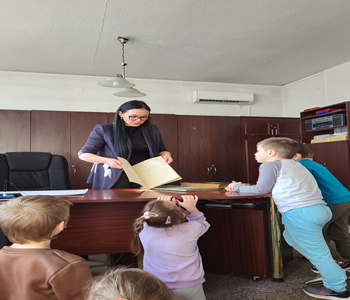 Dzieci z grupy Wróbelka Elemelka wybrały się do Urzędu Stanu Cywilnego w Margoninie gdzie pani kierownik oprowadziła je po budynku urzędu ciekawie opowiadając o specyfice pracy w tym miejscu. Dzieci z skupieniem słuchały nowych informacji oraz z zaskoczeniem oglądały 101 letnią książkę z wpisami mieszkańców miasta.