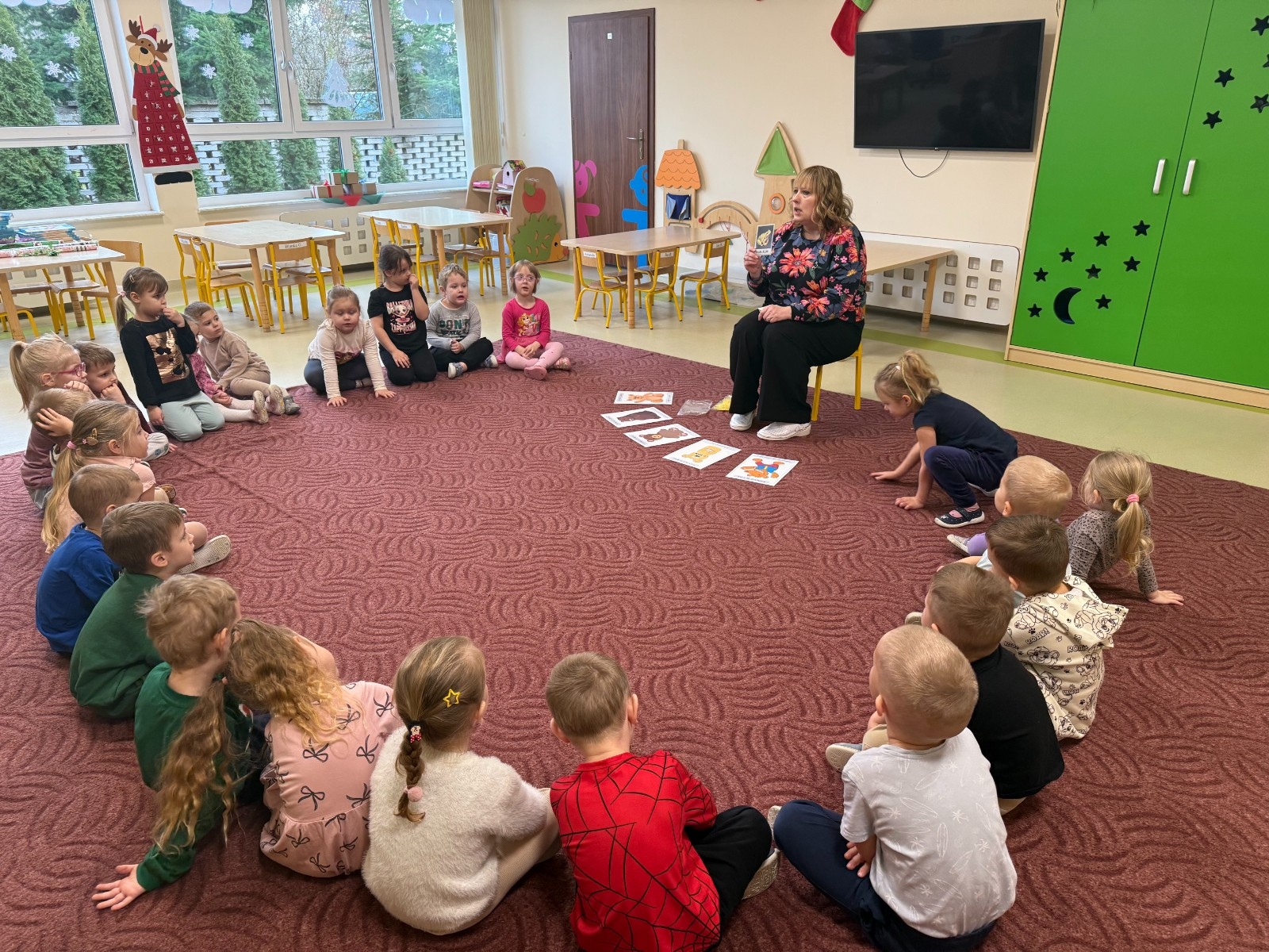 W środę 10 grudnia odwiedziła nas Pani Agnieszka- logopeda. Spotkała się z nami, aby wspólnie się pobawić, rozwijać zagadki, a przede wszystkim rozwijać i usprawniać aparat mowy. Pani Agnieszka udzielała nam wskazówek, pokazywała ćwiczenia, które pozwolą dzieciom usprawnić aparat mowy.