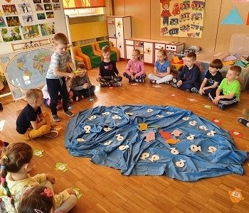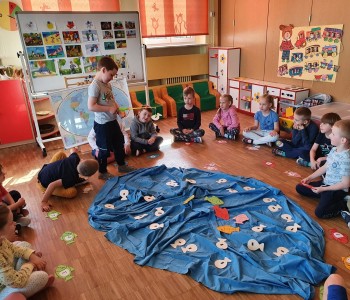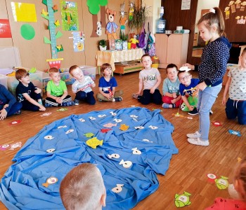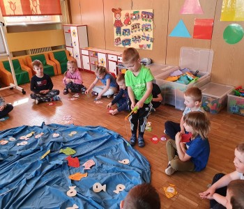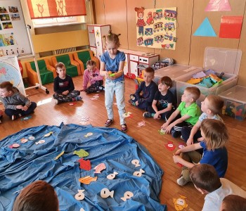 Zajęcia rozpoczęliśmy od oglądania mapy świata i odszukiwania na niej mórz i oceanów. Oglądaliśmy film o morskiej faunie i florze. Łowiliśmy ryby magnetyczną wędką, co wymagało dużego skupienia i cierpliwości. Odszukiwaliśmy rybki z podaną literą i dopasowywaliśmy ją do litery na muszelkach. Rozwijaliśmy spostrzegawczość wzrokową układając muszelkowe puzzle i odczytywaliśmy powstałe sylaby. W tym dniu dużo też rozmawialiśmy o ochronie przyrody, o dbaniu o czystość wód, abyśmy mogli żyć na pięknej planecie.