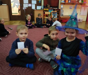 Dzieci z grupy Misia Uszatka wiedzą, ze zwyczaj wróżenia w wieczór andrzejkowy jest znany od bardzo dawna. Dzieci wiedza również, iż element zaglądania w przyłoić jest jedynie formą zabawy. Podczas spotkania andrzejkowego dzieci miały okazję wcielić się w magiczne postaci, a następnie wziąć udział w ciekawych wróżbach dostosowanych do wieku i możliwości dzieci. Dzieci wróżyły miedzy innymi z koloru, zawodów, butów a na koniec w asyście nauczycielki wróżyły z wosku.