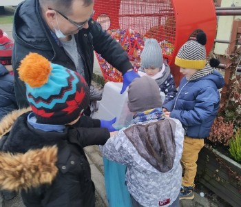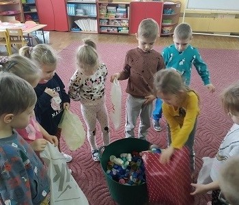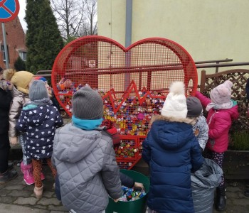 W rozwoju dziecka należy dbać o harmonie we wszystkich sferach rozwoju. Szczególnie istotnym jest tłumaczenie dziecku jego emocji oraz budowanie postawy empatycznej. Dlatego nasza grupa włączyła się w akcję charytatywną zbiórki nakrętek dla dzieci niepełnosprawnych. Dzieci wraz z rodzicami gromadzili nakrętki, a następnie przynieśli je do sali. Następnie dzieciom przytoczono cel zbiórki oraz podkreślono, iż pomóc innym mogą nawet przedszkolacy. Dzieci umieściły zebrane nakrętki w specjalnie przeznaczonym do tego sercu znajdującym się przed przedszkolem.