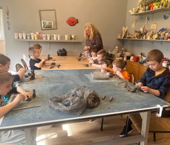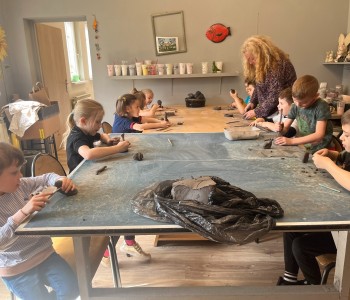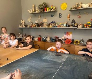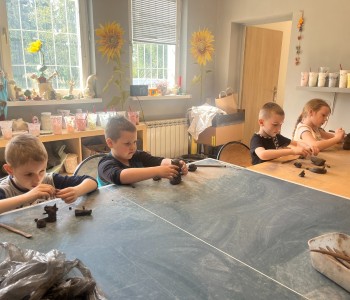 W ramach współpracy z MGOK, przedszkolaki uczestniczyły w warsztatach z gliny, które prowadziła pani Agnieszka. Glina jest materiałem, który fantastycznie rozwija zdolności plastyczne, rozbudza wrażliwość artystyczną i zapał twórczy. Warsztaty rzeźby w glinie rozwijały kreatywność, uczyły planowania, ale przede wszystkim były dla najmłodszych wspaniałą zabawę. Dziękujemy za kreatywnie spędzony czas w pracowni, który owocuje powstawaniem pięknych rzeźb.