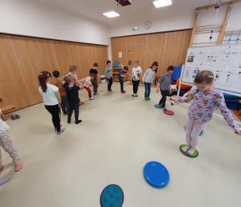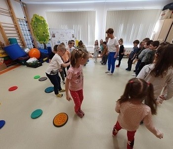 Dzięki niej nasze kości, stawy, mięśnie utrzymują się w odpowiedniej kondycji. „Muminki” podczas zajęć gimnastycznych uczą jak korygować postawę, wzmacniać mięśnie pleców. W przedszkolu dowiadują się również, że ruch odgrywa dużą rolę w trosce o zdrowy kręgosłup, zamiast siedzenia przed telewizorem czy komputerem.