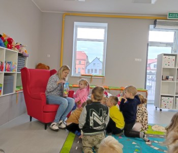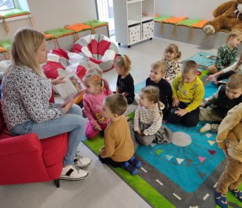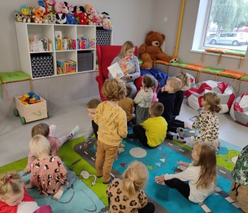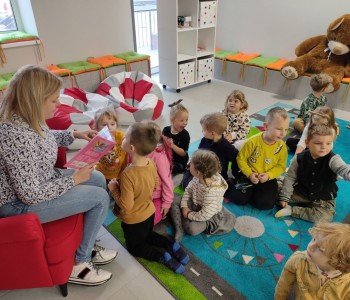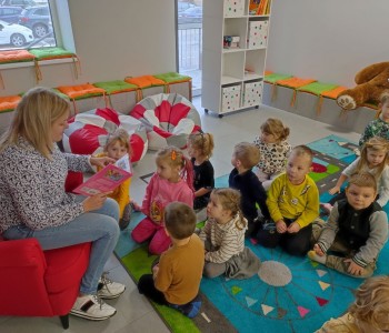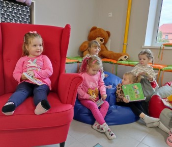 Z okazji Ogólnopolskiego Dnia Głośnego Czytania dzieci z grupy Smerfy i Miś Uszatek odwiedziły Miejsko-Gminną Bibliotekę Publiczną w Margoninie w celu wysłuchania bajki czytanej przez pracownika biblioteki.