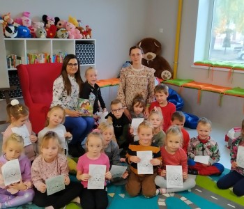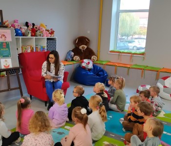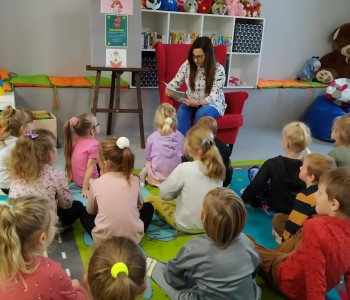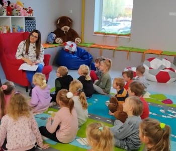 Dzieci uważnie słuchały przygód kundelka, a następnie rozmawiały z bibliotekarką panią Martyną Wierzbińską na temat przygód czworonoga. Codzienne czytanie rozwija wyobraźnię, umiejętność słuchania, poszerza zasób słownictwa dziecka i przyczynia się do poszerzenia zainteresowania otaczającym je światem.