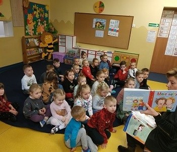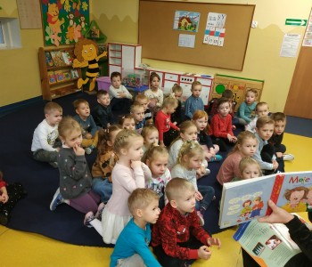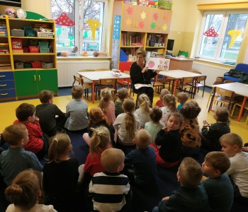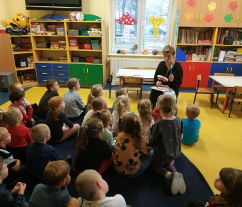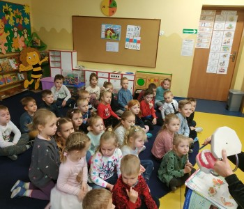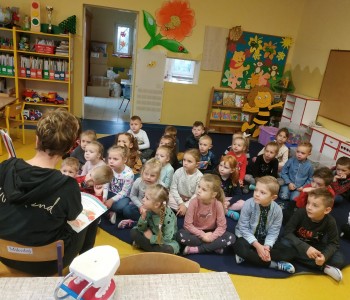 Wysłuchały opowiadania pt. „Moje zęby”, dowiedziały się z niego jak zbudowane są zęby i co się z nimi dzieje jak zapominamy o nie dbać. Dzieci dowiedziały się jakie pokarmy służą budowie zębów, a jakie je niszczą. Pani pielęgniarka pokazała właściwy sposób mycia zębów wykorzystując model szczęki i szczoteczkę, zwróciła dzieciom uwagę, że każde dziecko powinno mieć swoją szczoteczkę do zębów. Na zakończenie spotkania pielęgniarka poprosiła dzieci, żeby pamiętały o codziennym myciu zębów.