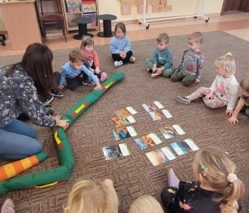 Dzisiaj maluszki poznały nowego przyjaciela, towarzysza spacerów i pieszych wycieczek- węża Gucia.