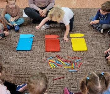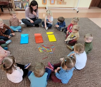 22 listopada maluszki w grupie Smerfów obchodziły "Dzień kredki". Zabawy rozpoczęły od wysłuchania piosenki "Kolorowe kredki". Kolejne zabawy utrwalały u dzieci segregowanie przedmiotów wg koloru, a także przeliczanie. Dzieci układały swoje pierwsze "kredkowe" rytmy, a na zakończenie zajęć ozdabiały kredki wg własnych pomysłów.