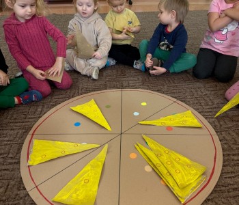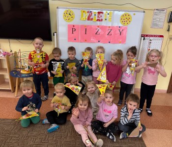 Pizza jest jedną z najpopularniejszych potraw na świecie. Uwielbiają ją zarówno dzieci, jak i dorośli, dlatego w grupie Smerfów obchodziliśmy Międzynarodowy Dzień Pizzy. Podczas zajęć dzieci poznały krótką historię pizzy, dowiedziały się, z jakiego kraju pochodzi oraz poznały składniki, które są niezbędne do jej przygotowania. Przedszkolaki stworzyły także, kolorowe placki wykorzystując do tego techniki plastyczne. Pomimo, iż pizze te były papierowe, bardzo rozbudzały wszystkie apetyty. Przy okazji tych zajęć dzieci rozwijały wiedzę na temat różnych składników spożywczych oraz przypraw. Podczas wspólnych zabaw najmłodsi doskonalili liczenie, a także utrwalali kolory.