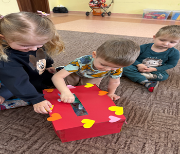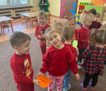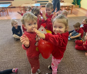 W dniu św. Walentego panował wyjątkowy nastrój. Dzieci poznały tradycje walentynkowe, dowiedziały się, jak ważne jest okazywanie uczuć przyjaźni i sympatii w stosunku do innych ludzi. Wyklejały serduszka plasteliną, wykonywały laurki, by następnie wrzucić je do "Poczty walentynkowej". Podczas zajęć nie zabrakło zabaw ruchowych i tanecznych, które integrowały dzieci i pozwalały im doświadczyć radości płynącej z tego święta. Wspólne zabawy były okazją do ćwiczenia sprawności manualnej, fizycznej, doskonaliły mowę, a także wzbogacały wiedzę na temat siły ludzkich uczuć.