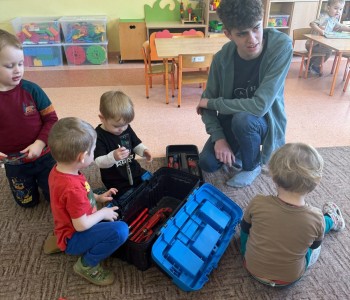 Dnia 18 marca grupę Smerfów odwiedzili panowie: Henryk i Łukasz, którzy przybliżyli dzieciom swój zawód- zawód hydraulika. Panowie przybyli z ogromnymi walizkami pełnymi specjalistycznych narzędzi oraz rur. Opowiedzieli o swojej pracy, o tym jakich narzędzi używają i do czego one służą.