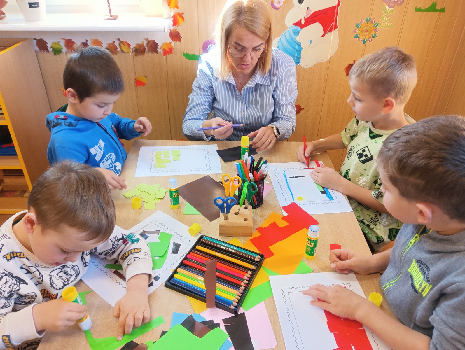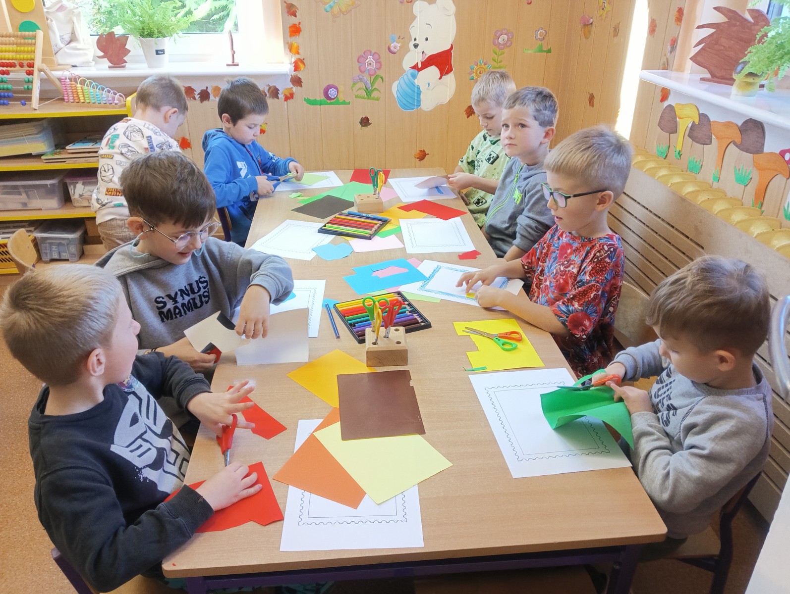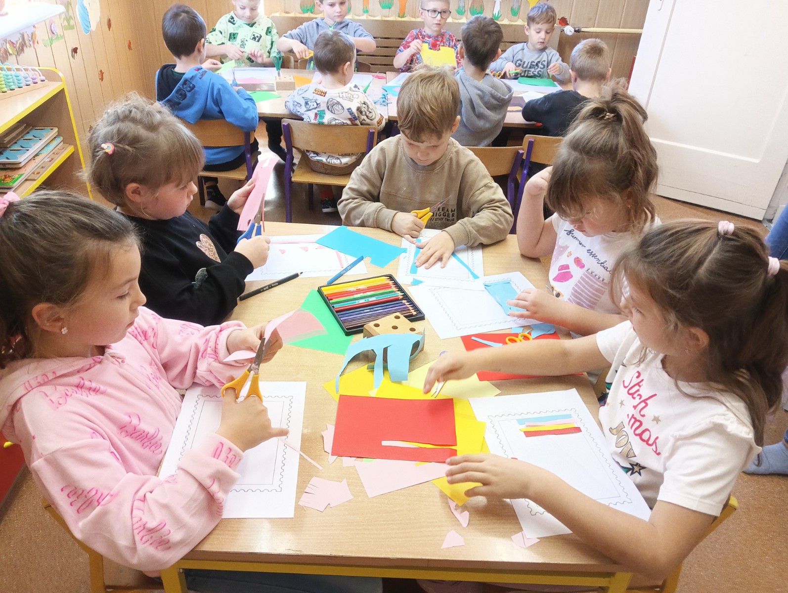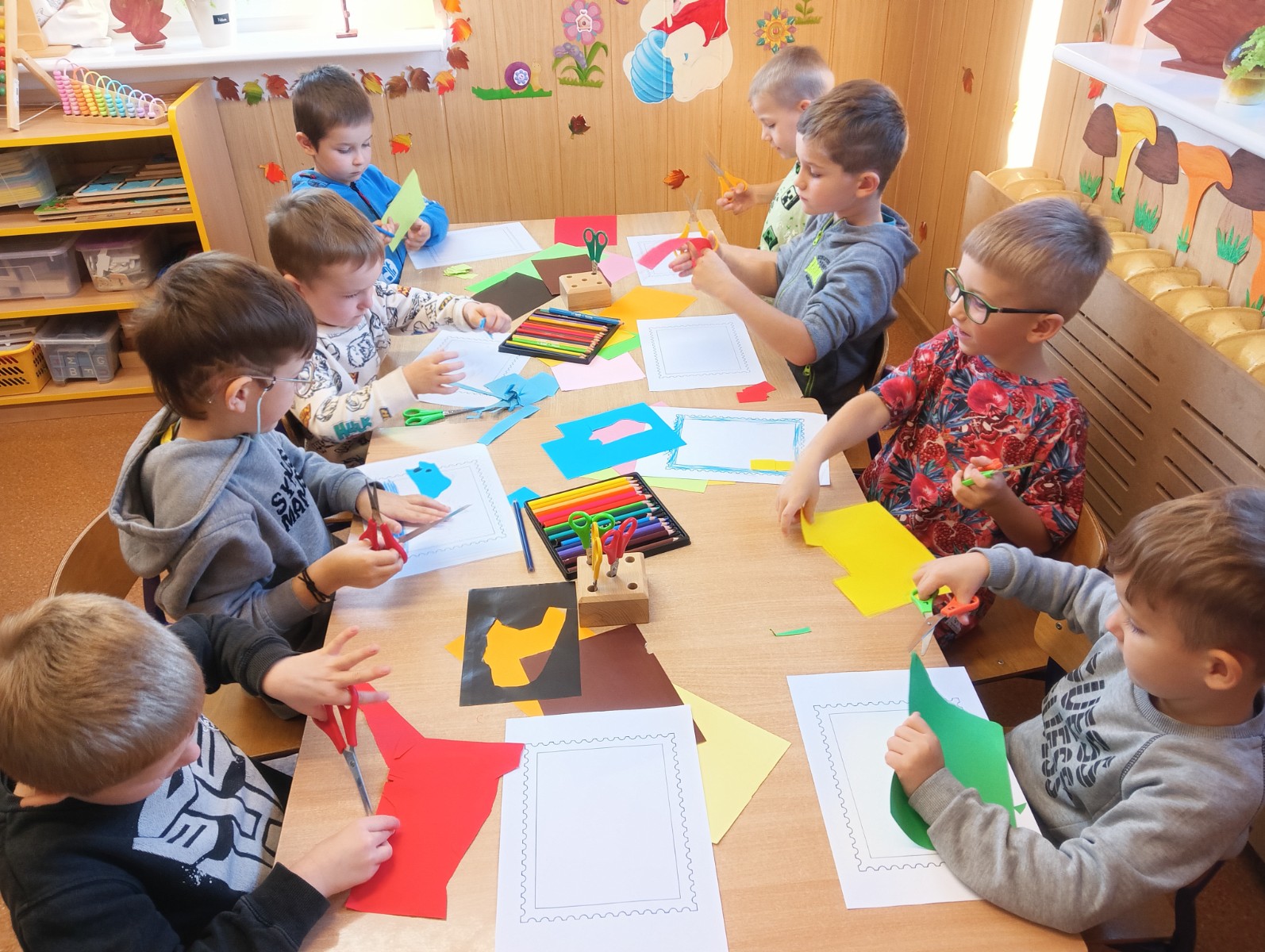 Następnie każdy przedszkolak samodzielnie zaprojektował i wykonał własny znaczek pocztowy. Wszystkie prace okazały się bardzo kreatywne i wyjątkowe.