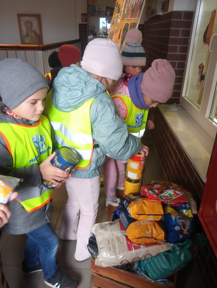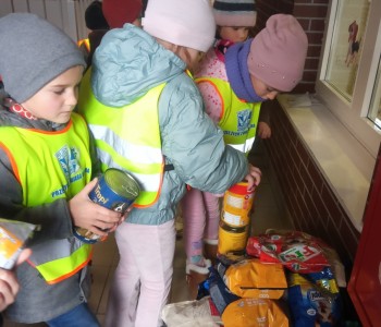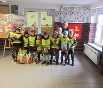 Przedszkolaki z grupy „Myszka Miki” uczestniczyły w akcji zbiórki karmy dla czworonogów w Schronisku dla zwierząt „Cywil” w Rybowie, zorganizowanej w Szkole Podstawowej im. Jana Pawła II w Lipinach. Dorota Domańska