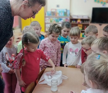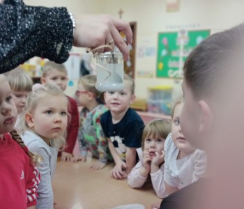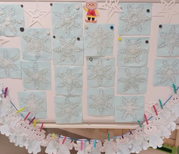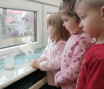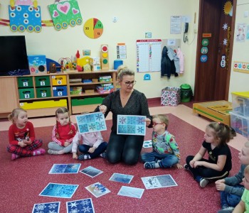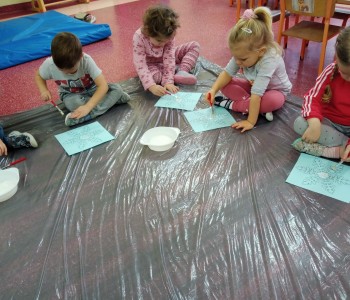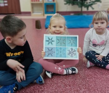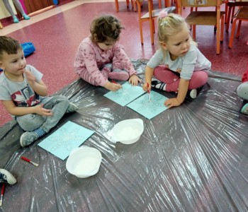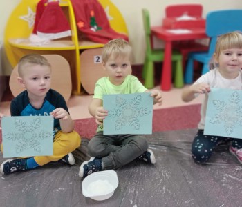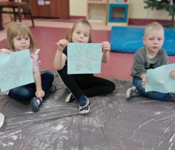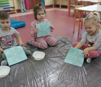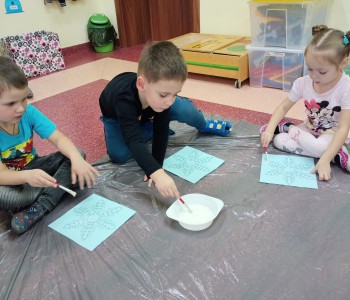 Krasnoludki kochają śnieg i zimowe zabawy, dlatego też na zajęciach plastycznych wyczarowały śnieżynki z cukru. Dzieci dowiedziały się w jaki sposób powstają płatki śniegu i dlaczego spadają na ziemię. Z cukru i kleju powstały prawdziwe i niepowtarzalne dzieła sztuki, którymi teraz możemy ozdobić salę przedszkolną. Wykonaliśmy również wspólnie eksperyment otrzymania kryształków z soli. Będziemy teraz codziennie obserwować, jakie zmiany zachodzą w naszym słoiczku.