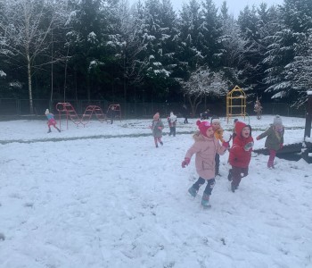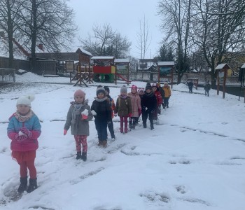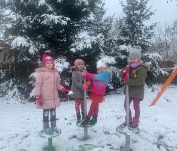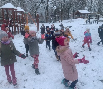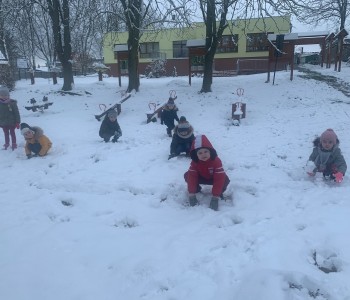 Korzystając z aury, przedszkolaki z grupy „Reksia” oddały się zimowemu szaleństwu: lepiły bałwana, robiły „aniołki”, rzucały śnieżkami, utrwalając podczas zabaw zasady bezpieczeństwa. Dzieci bardzo lubią zimowe „szaleństwa”.