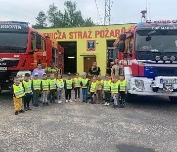Grupa „Reksia” odwiedziła strażaków z Ochotniczej Straży Pożarnej w Margoninie, aby poznać tajniki ich pracy. W trakcie spotkania strażacy zaznajomili dzieci z ciekawostkami związanymi z ich pracą, przestrzeganiem zakazów, zachowaniem bezpieczeństwa w czasie: pożaru, burzy oraz wypadku.