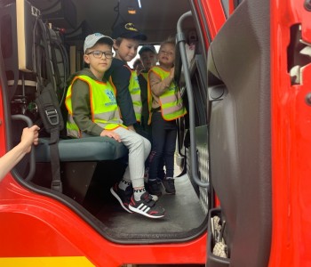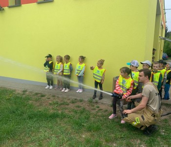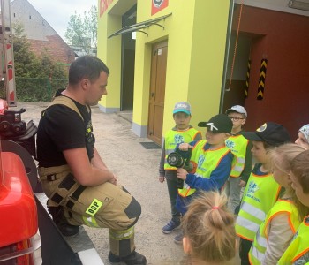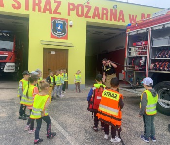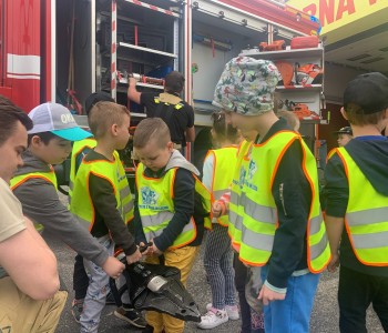 Dzieci dowiedziały się w jakich okolicznościach można wzywać straż pożarną, że strażacy nie tylko gaszą pożary, ale również są wzywani do różnych wypadków. Jak zawsze największe zainteresowanie wzbudziły wozy strażackie. Przedszkolaki mogły je z bliska oglądać oraz podziwiać wyposażenie, jakim dysponują podczas swojej ciężkiej oraz odpowiedzialnej pracy strażacy. Dzieci utrwaliły sobie numer telefonu do Straży Pożarnej- 998 i numer alarmowy – 112. Przez chwilę wszyscy uczestnicy wycieczki mogli poczuć się jak strażacy, przymierzając hełm strażacki i umundurowanie. Przedszkolaki wykazały ogromne zainteresowanie spotkaniem podczas, którego nabyły cenną wiedzę. Za miłe spotkanie dzieci podziękowały strażakom i życzyły wytrwałości w codziennych zmaganiach z przeciwieństwami losu.