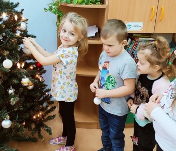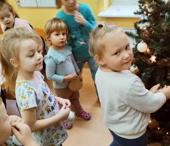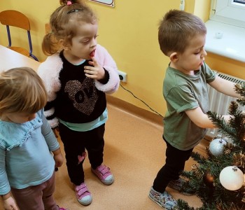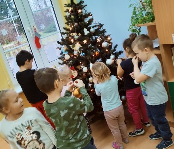 Tuż przed wizytą św. Mikołaja dzieci z grupy Koziołka Matołka zabrały się za strojenie drzewka. Przedszkolaki z ogromnym zapałem wieszały bombki a z pomocą pań również choinkowe światełka. Dzięki zaangażowaniu dzieci nasza choinka wygląda prześlicznie.