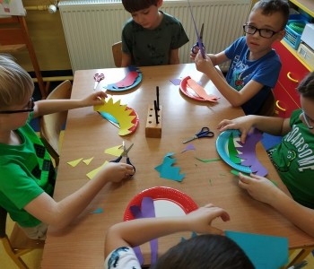 Obchodząc Dzień Dinozaura dzieci dowiedziały się jakie dinozaury zamieszkiwały świat i jakie są hipotezy mówiące o ich wyginięciu. Dowiedziały się również na czym polega praca paleontologa. Następnie dzieci wykonały z papierowych talerzyków dinozaury.