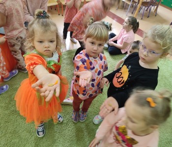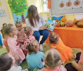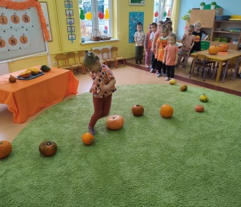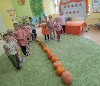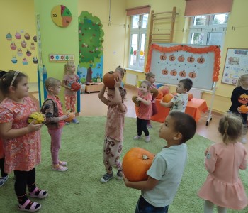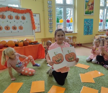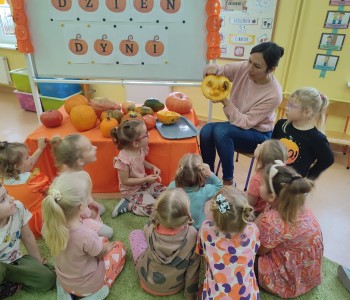 W czwartek 31 października dzieci z grupy Koziołka Matołka obchodziły Dzień Dyni, który był fantastyczną okazją do wspólnej zabawy przepełnionej kolorem pomarańczowym. Tego dnia dzieci przyniosły do przedszkola dynie o różnych kształtach, kolorach i gabarytach. Dzieci zobaczyły co dynia kryje w środku, wzięły udział w zabawach sportowych z dynią w roli głównej oraz w zabawach manualnych, usprawniających pracę rąk.