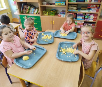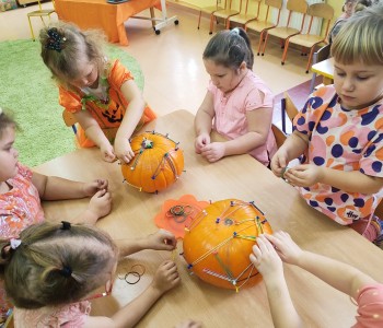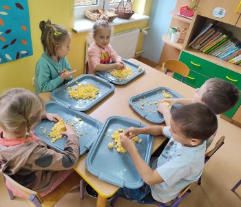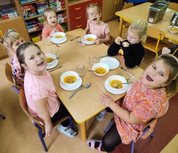 Nie zapomnianych wrażeń sensorycznych zapewniła dzieciom pomarańczowa dyniolina – masa plastyczna z dyni. Miłą, a zarazem smaczną niespodzianką była zupa dyniowa z grzankami i prażonymi pestkami, przygotowana przez panie kucharki specjalnie na tą okazję. Dzień Dyni to święto, które przyniosło nam wielu wrażeń i z pewnością jeszcze nie raz zagości w naszym przedszkolu.