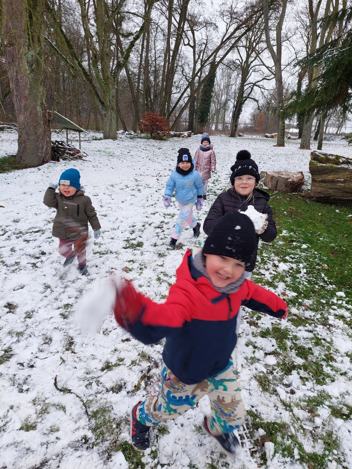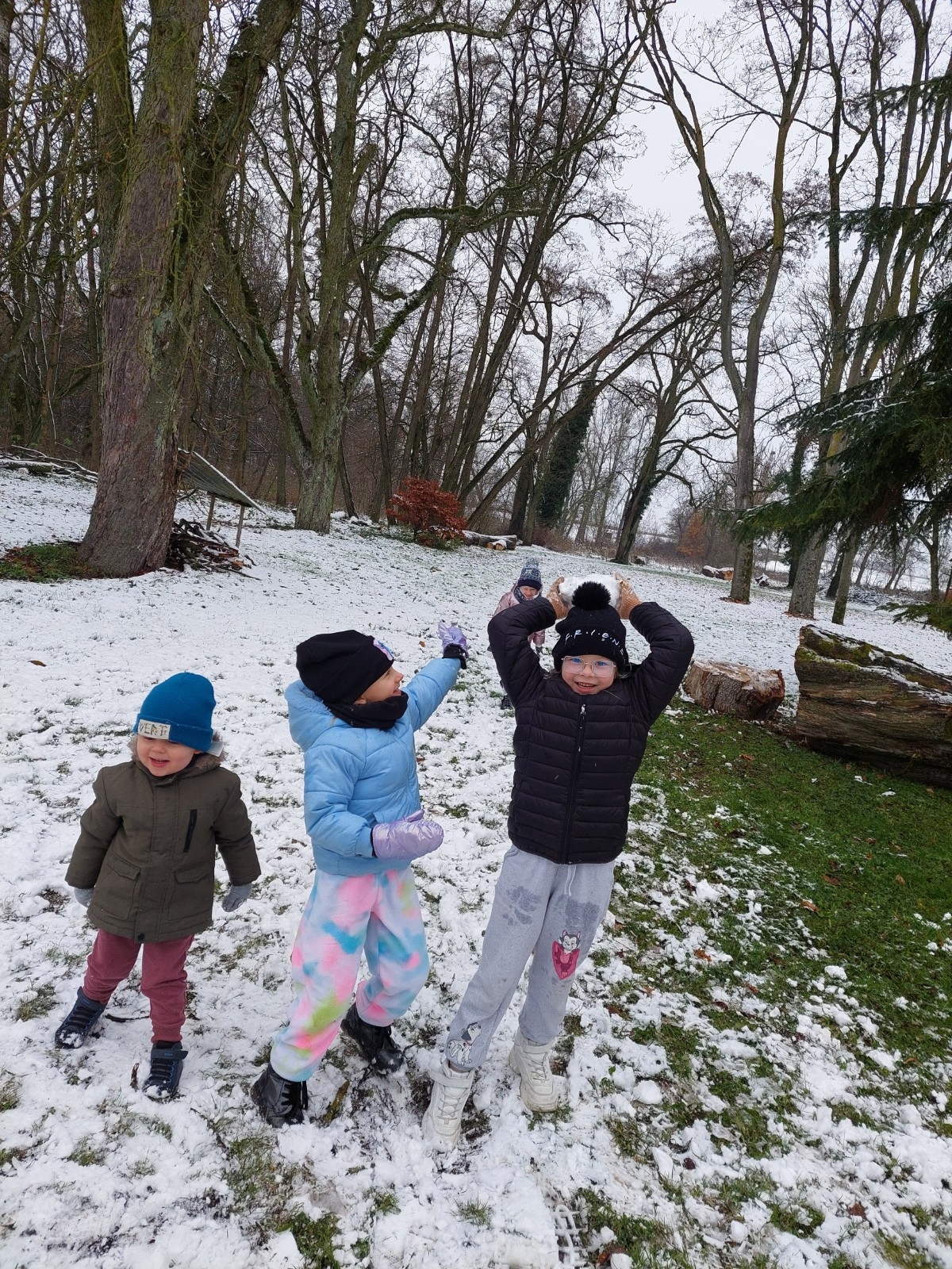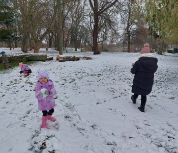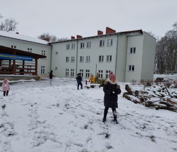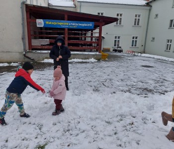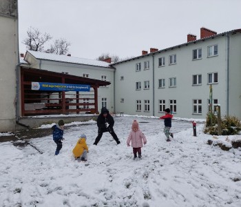 Gdy tylko nadszedł czas wyjścia, ubrane w ciepłe kurtki i rękawiczki wybiegły na plac zabaw, by przywitać zimę w najlepszy możliwy sposób. Zabawy na świeżym powietrzu nie tylko dały dzieciom mnóstwo radości, ale też pozwoliły im ćwiczyć współpracę, kreatywność i sprawność ruchową. Dla przedszkolaków z grupy Koziołka Matołka był to wyjątkowy, pełen zimowej magii dzień — a to dopiero początek zimowych przygód.