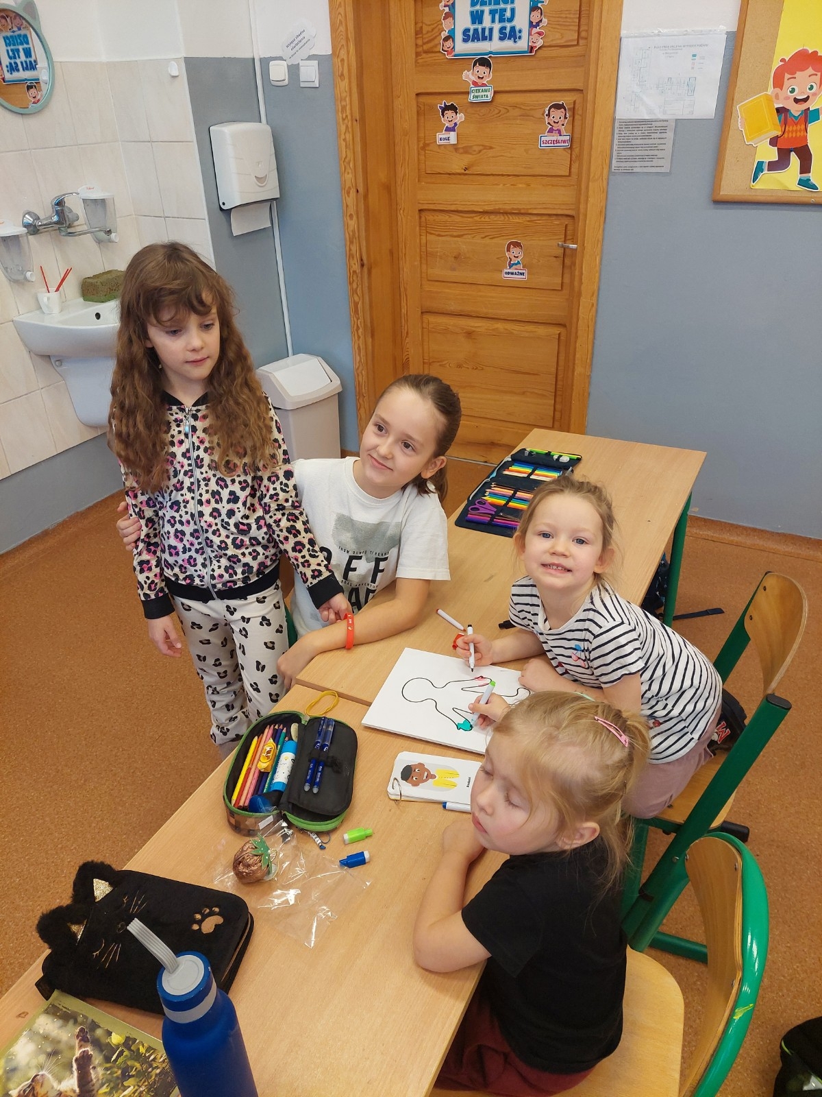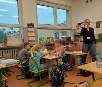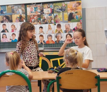 Podczas zajęć dzieci poznawały różne emocje – radość, smutek, złość, strach czy zdziwienie – oraz uczyły się, jak je rozpoznawać na podstawie mimiki, gestów i sytuacji z życia codziennego. Wspólne rozmowy, zabawy ruchowe i ćwiczenia wyrażania emocji pozwoliły dzieciom oswoić trudniejsze uczucia oraz dowiedzieć się, w jaki sposób można o nich mówić. Była to także doskonała okazja do rozwijania empatii i umiejętności współpracy. Wizyta w szkole dostarczyła dzieciom wielu pozytywnych wrażeń i stała się ważnym krokiem w budowaniu świadomości emocjonalnej. Maluchy wróciły do przedszkola z uśmiechami i nową wiedzą, którą z pewnością wykorzystają na co dzień. Dziękujemy pani Marioli Kasztalan, wychowawczyni klasy IIIA za zaproszenie oraz pani Natalii Galus za ciekawe zajęcia.